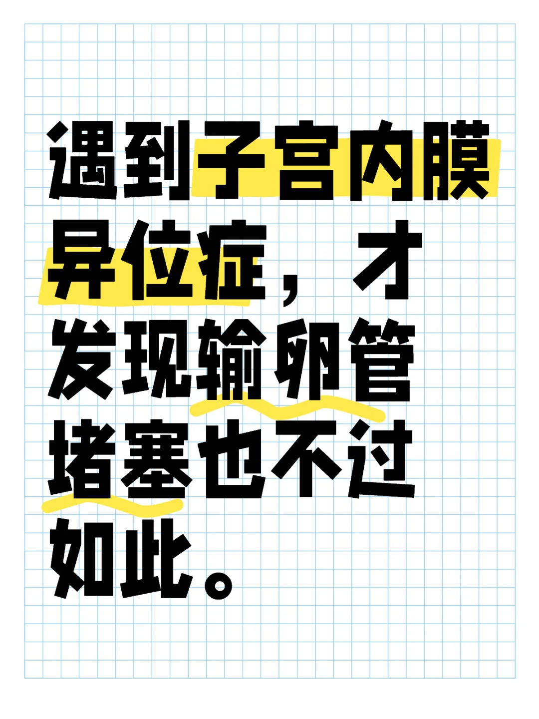 我是输卵管堵塞做的宫腹腔镜,然后发现了子宫内膜异位症,刚开始没当回事儿,最近了解越多,越发现输卵管堵塞的问题好小。心累。